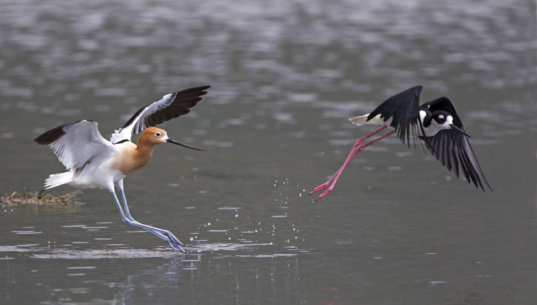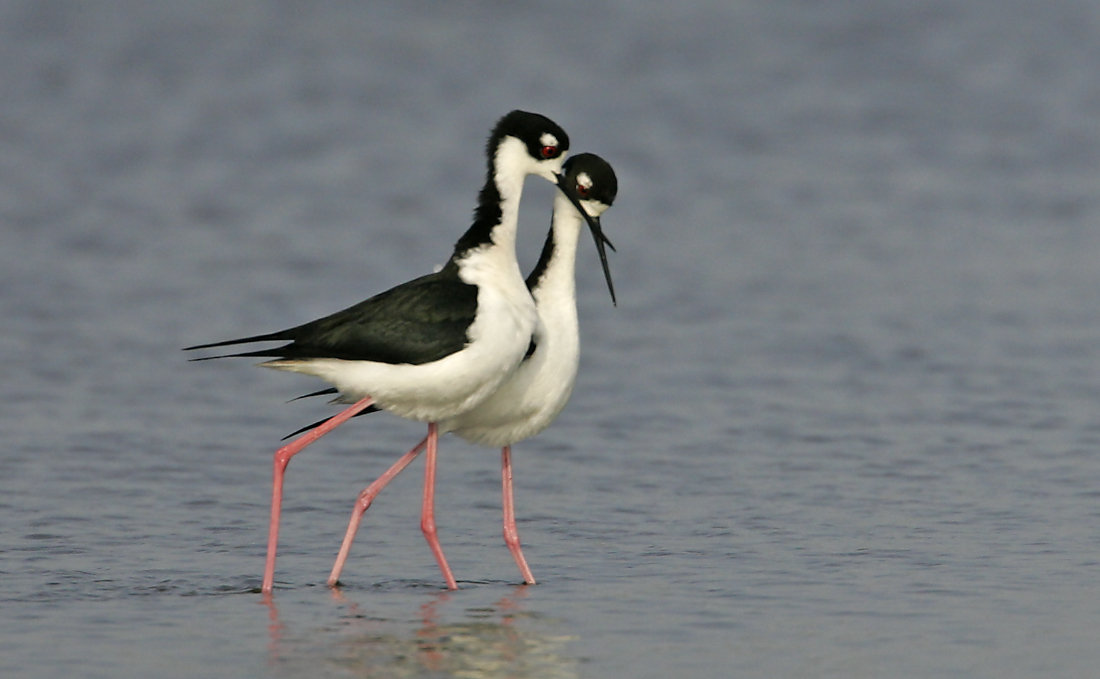 Their breeding displays and behaviors are some of the most sensitive and graceful of any bird group, as evidenced by their post-copulation strutting where the male wraps his bill around the female’s as they strut elegantly together while celebrating the special act that just occurred (see nearby photo). Their close relative American Avocet exhibits similar displays during breeding season.