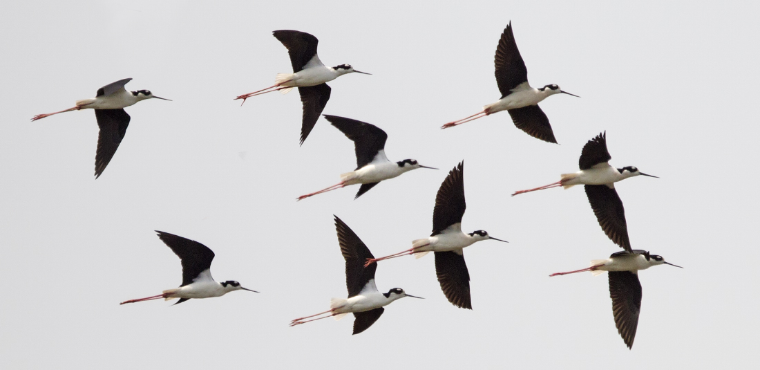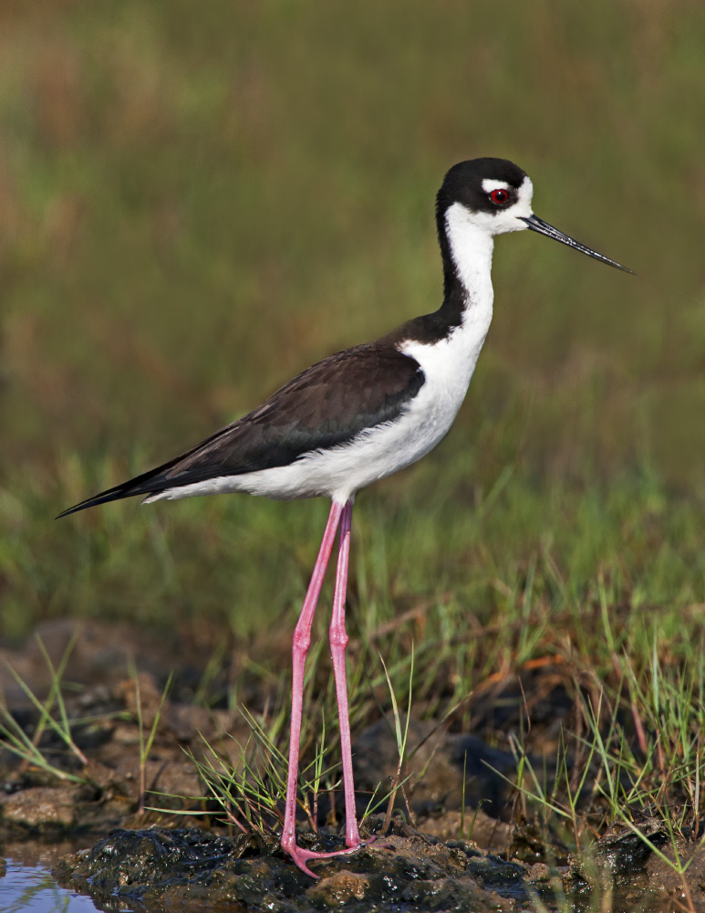 Black-necked Stilts adapt well to their requisite man-made, shallow impoundments, and breed in both fresh and tidal wetlands. Nest scrapes are situated on islands, dikes, tussocks or elevated platforms close to water, and less frequently on mats of floating vegetation.
