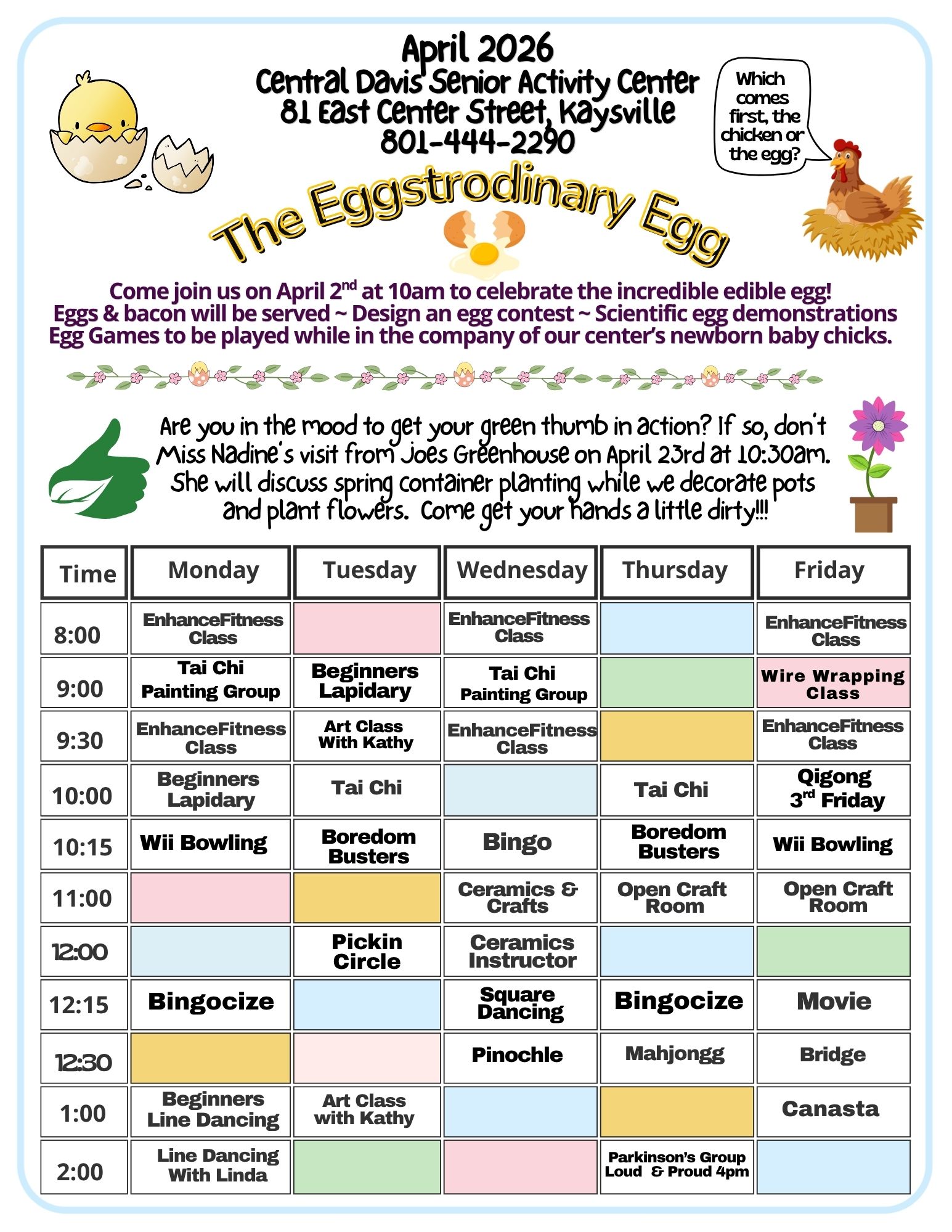Built in 1991, the Central Davis Senior Activity Center serves seniors in the Layton, Kaysville, Fruit Heights, Farmington, and Centerville areas. Central Davis serves hot meals and more than 120 home delivered meals each week day. We offer a variety of classes, trips, fun activities, volunteer opportunities, entertainment, and physical activity. Join us Monday through Friday from 8am to 5pm.